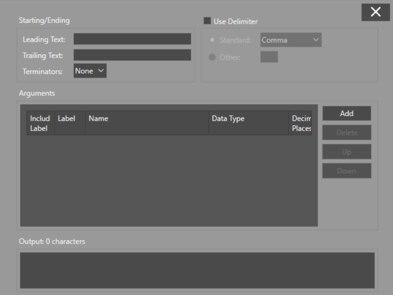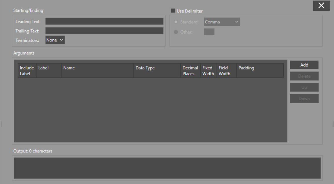 Click Format Data to open a dialog in the center of the screen, where you can configure the contents of the input and output buffer: