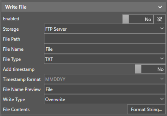 - Write File settings allow you to define the conditions and properties for writing job reports to file.