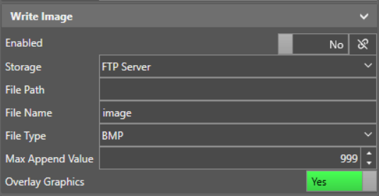 - Write Image settings allow you to define the conditions and properties for writing images to file.