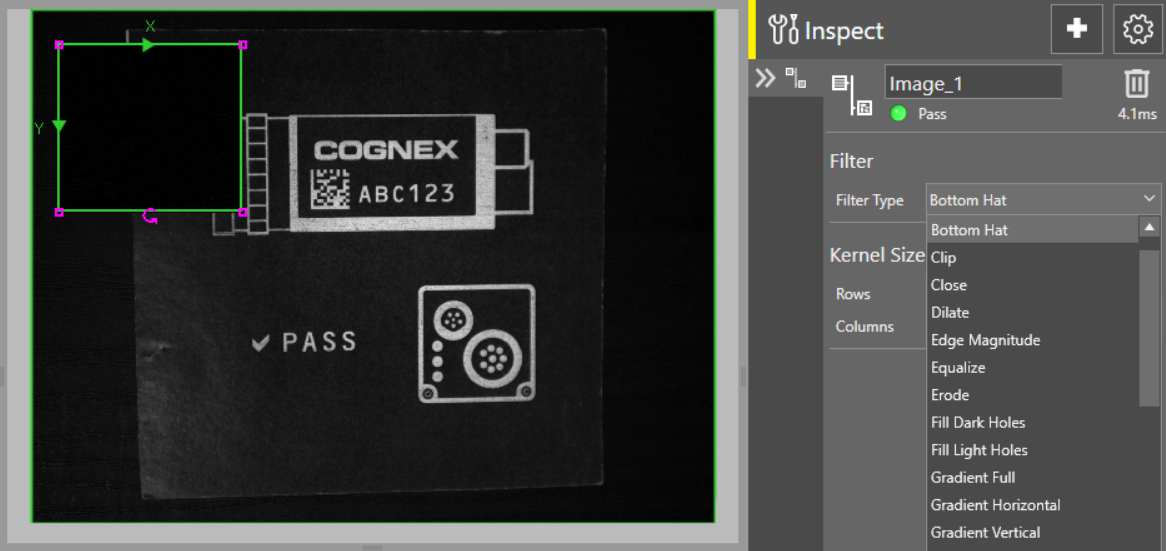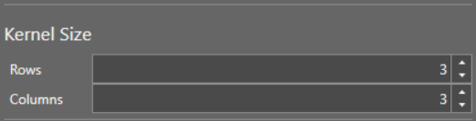 A kernel is a rectangular array of numbers that defines the processing neighborhood for operations performed on each pixel location in an image. Adjust the Rows and Columns parameters to change the width and height of the kernel, respectively. Note: The kernel has to be constructed from odd integer values. the default kernel size is 3x3.