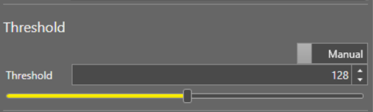 To enable automatic threshold configuration, toggle the Manual/Auto toggle. If Auto is enabled, all other settings in the Threshold section are disabled. Change the threshold value using the slider or by providing the numerical value in the Threshold box. |