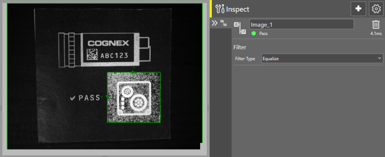 Specifies a histogram equalization operation that extracts the histogram of the input image and spreads out the most frequent greyscale values to create a more even distribution. The result is an output image with increased contrast. The Equalize filter is useful in environments where the lighting can vary slightly from one image to the next, or when some aspects of the object being inspected can slightly vary. |