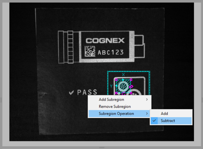 您还可以通过右键单击采集显示屏幕,然后在出现的下拉菜单中选择添加子区域 > 形状,将子区域添加到模型区域以屏蔽不相关或混淆特征。默认情况下,子区域会被添加到模型区域,但您可以进行更改,通过右键单击采集屏幕后在下拉菜单中选择子区域操作 > 减去来将其减去。
