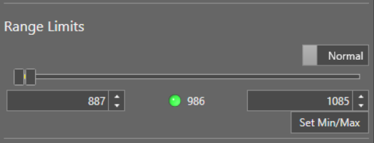 单击设置最小值/最大值来使用自动计算的像素数量的最小值和最大值。当您添加工具或单击“设置最小值/最大值”按钮时,自动计算的最小值和最大值低于和高于所定义区域内当前像素数量 10%。
