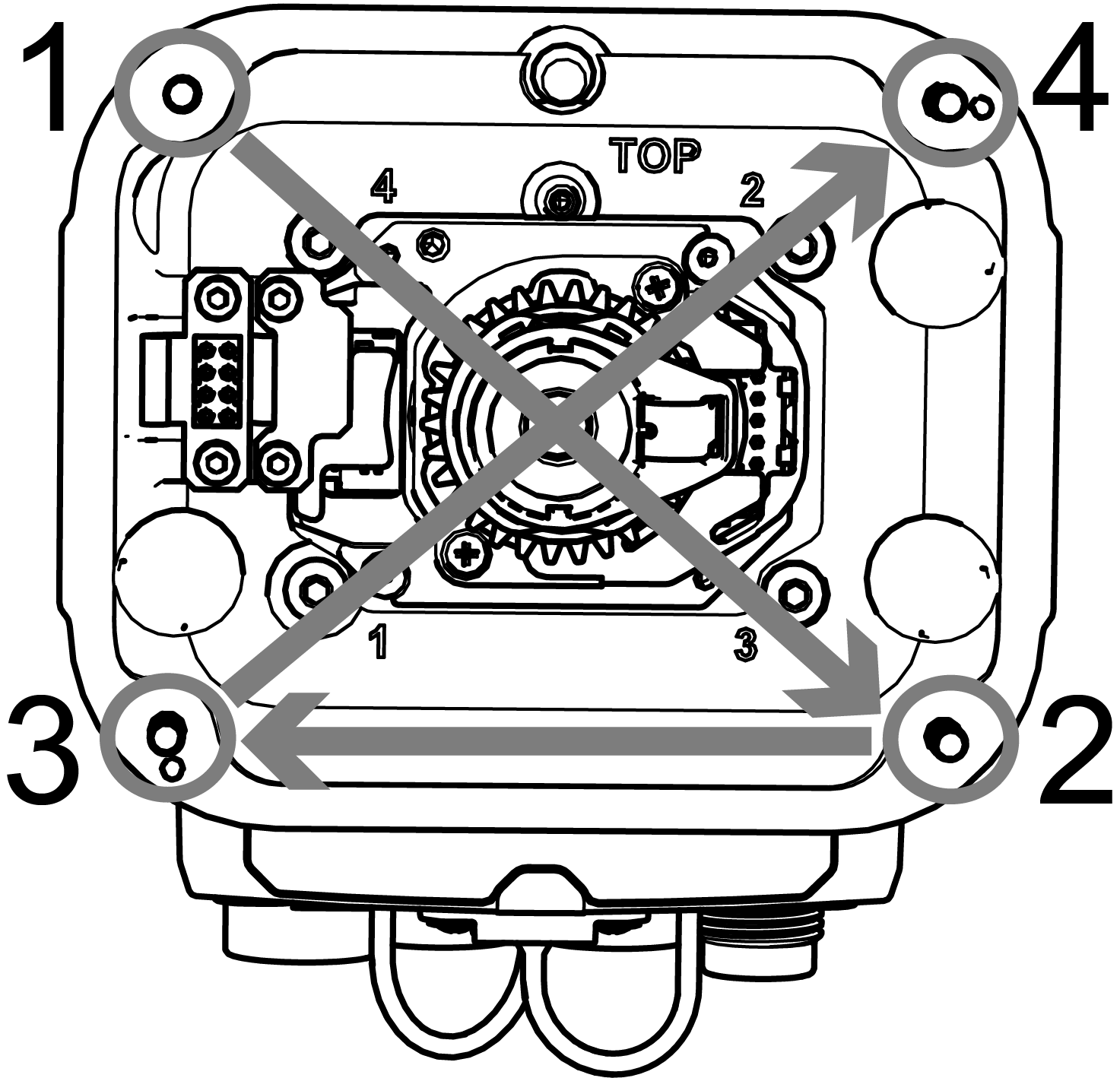Note:Observing the tightening sequence below, tighten all four screws to 0.5 Nm using a torque wrench.