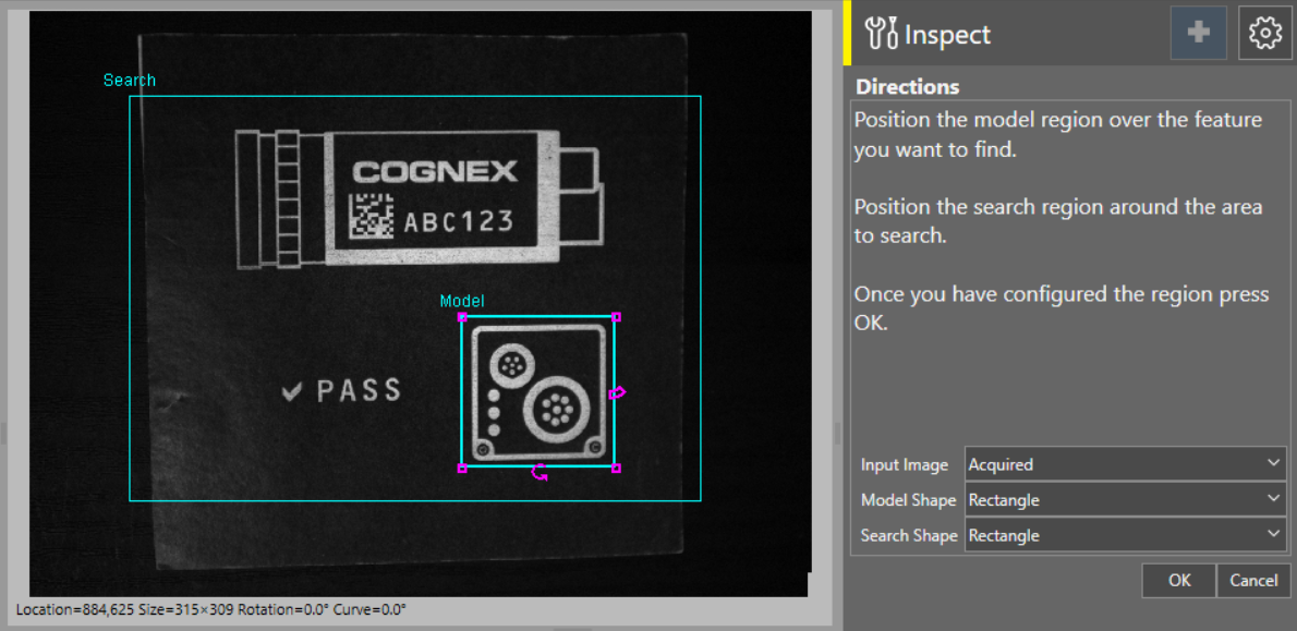 For best results, make sure that the model region fits the target pattern you want to train as closely as possible. The training happens when you confirm your settings and click OK.