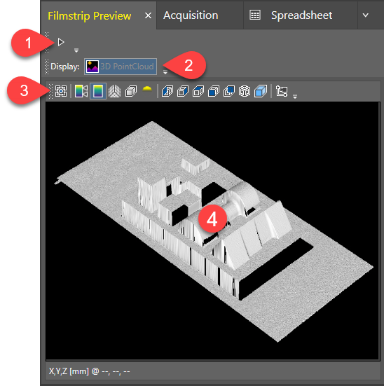 | 3 | The Filmstrip Preview Toolbar. See the 3D Point Cloud Display Toolbar topic for more information on the available buttons and their usage. |