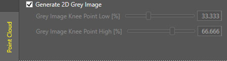 The Change 3D/Grey Display button changes the representation from 3D Pointcloud to 2D texture. The Change 3D/Grey Display button is only available if you enable Generate 2D Grey Image first.