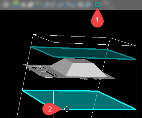 Enables you to toggle between 2D and 3D views of the point cloud. Clicking on the Show 2D texture overlay button enables the 2D overlay on the point cloud. |