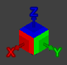 The screen also has a Rotation Compass, showing the direction of the X, Y and Z axes and planes relative to the current perspective. Left-click on any of the colored planes of the compass to snap the view direction to that respective plane.