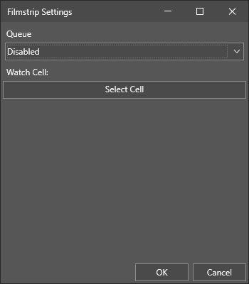 The Filmstrip Settings dialog allows you to configure how the HMI Filmstrip User Input gets populated with recorded acquisitions on the WebPage while the job is online, and also lets you specify the Spreadsheet cell that will be used to check if the detected acquisitions are considered passed or failed on the HMI Filmstrip.
