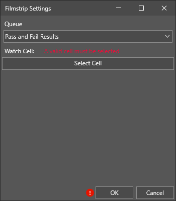 Once you click OK, the Filmstrip Settings dialog will provide additional information and tooltips on resolving the error: