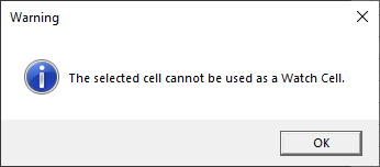 Configure the Watch Cell option, used to check whether the acquisition results are passed or failed. The selected call cannot be empty and cannot be an input cell. If you select an invalid cell, a Warning dialog will appear to inform you on the incorrect selection: