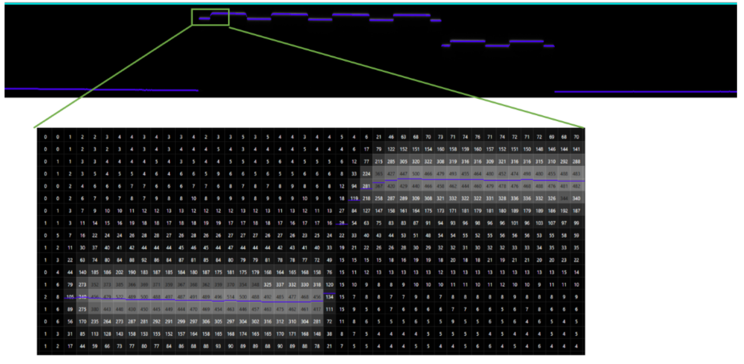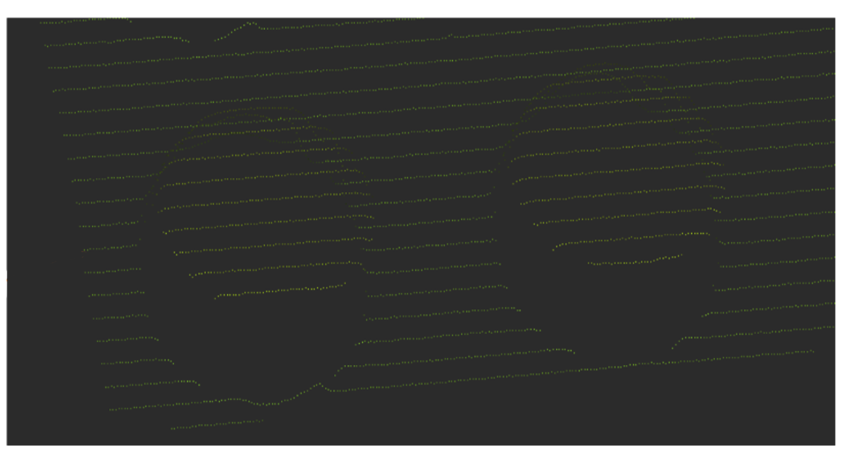 A point cloud is generated from a series of uncalibrated peak data. For example, the image below shows a raw 2D image from a single intensity scan.