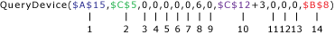 Double-click the QueryDevice function, located in cell B15, and ensure that it has the following parameter settings: