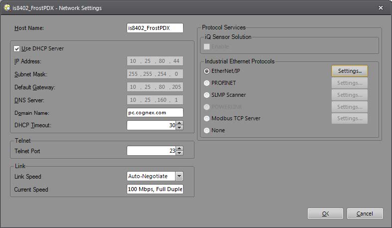 - Select the enabled Settings button next to the EtherNet/IP selection.