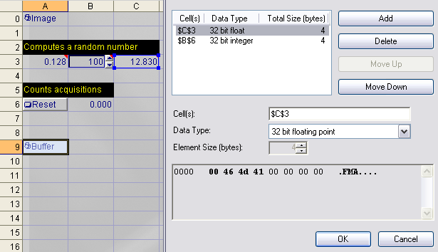 From the FormatInputBuffer dialog, click on the Add button and add a 32-bit float and a 32-bit integer to the list.
