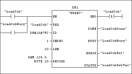 The most common operation performed between an In-Sight vision system and a Siemens PLC using the Read and Write Record commands is changing a job. Within the Siemens PLC, these commands are sent using the "WRREC" (SFB 53) and "RDREC" (SFB 52) blocks.