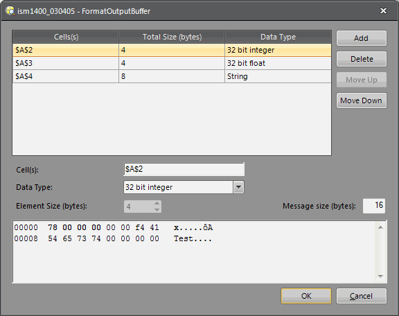 The FormatInputBuffer and FormatOutputBuffer dialogs are used to automatically configure data for the FormatInputBuffer and FormatOutputBuffer functions, and return a Buffer structure containing the formatted data. For more information, see FormatInputBuffer and FormatOutputBuffer.