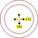 Increases or decreases the inner or outer radius of the annulus from the center. The inner radius (arrow right) and outer radius (arrow down) are indicated, in pixels. When using the mouse, the inner radius and outer radius values are displayed in the status bar.