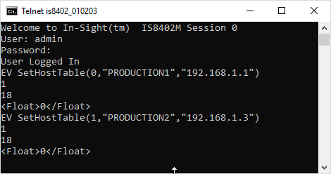 To add a sensor with the host name of "PRODUCTION1" and the IP Address of "192.168.1.1" as the first entry in the Host Table, issue the following command: EV SetHostTable(0,"PRODUCTION1","192.168.1.1".