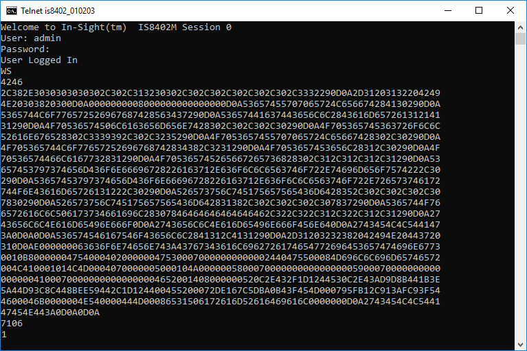 The In-Sight sensor responds with a status code of 1, indicating that the command was executed successfully.