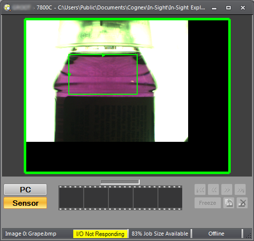 • The display area, which consists of the active image from the In-Sight vision system.