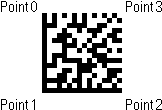 For barcodes, the finder pattern points are centered on each of the four corner cells of the symbol. Point 0 is the cell in the upper left-hand corner, Point 1 is the lower left-hand corner, Point 2 is the lower right-hand corner and Point 3 is the upper right-hand corner. Here are the point locations on a 1D barcode: