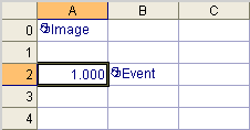 Click OK to accept the default property sheet settings. An Event function, with the Trigger parameter set to Online/Offline, is automatically inserted into the adjacent cell. Cell A2 returns 0.000 indicating that the sensor is Offline.