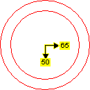 Increases or decreases the inner or outer radius of the annulus from the center. The inner radius (arrow right) and outer radius (arrow down) are indicated, in pixels. When using the mouse, the inner radius and outer radius values are displayed in the status bar.