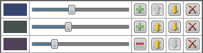 Subir/Bajar: Cambia el orden de las operaciones de los colores en la tabla. La operación de color se ejecutará de arriba abajo.