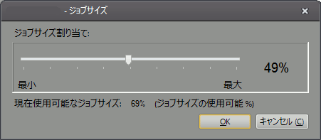 ジョブにツールを追加しているときに、ジョブメモリについてのエラーメッセージ (「ジョブにこのツールを実行するための十分なメモリがありません。」) が表示された場合に、[ジョブサイズの調整] ボタンを押して、このダイアログにアクセスすることも可能です。