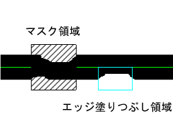 エッジ塗りつぶしを使用すると、ビードの片側がエリア内で検出されなくなります。その後の検査ではマスクエリアは無視され、マスクエリア内の欠陥は報告されません。