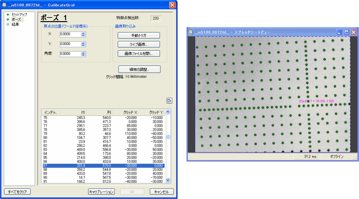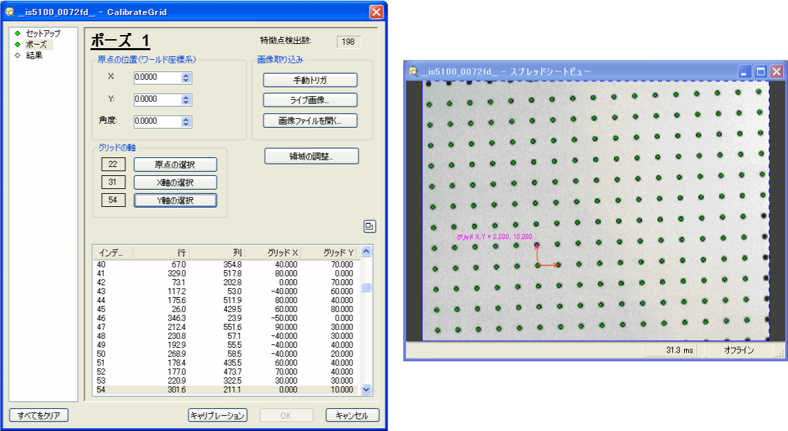 2. 画像の取り込みが完了すると、CalibrateGrid 関数は特徴点を自動的に抽出します。