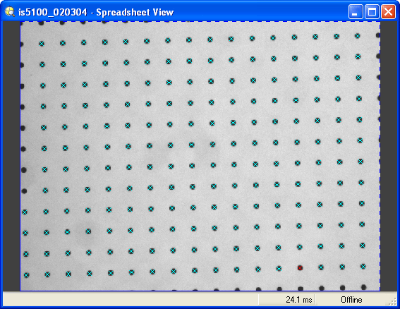 • 画像内にあるドットの推奨されるピクセルの直径は、15 ~ 30 ピクセルの間です。最小値と最大値の範囲は、6 ~ 50 ピクセルです。ピクセルの直径が 50 を超えるドットまたは 6 未満のドットは、ツールによって検出されません。