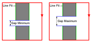 When the Gaps tab is selected, the tool will display the best-fit circle or line result, and any detected defects or gaps. "Gaps" are specified as edge deviations from the best-fit line or circle.