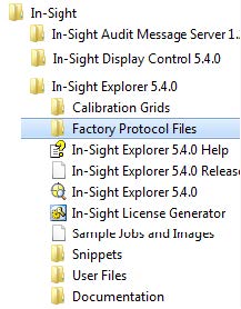 Electronic Data Sheets (EDS) are text files used by various network configuration tools to identify In-Sight vision systems on a network. You can use EDS files with any EtherNet/IP device. In-Sight EDS files are installed with In-Sight Explorer software in the Factory Protocol Files folder: