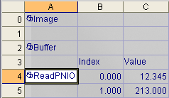 In order to send data from the Siemens PLC to the In-Sight Explorer spreadsheet, the data must be pulled from the PROFINET stack by using the ReadProfinetBuffer function. This function takes the data format created within the FormatInputBuffer function, reads the data from the data area of the PROFINET User Data module, and formats this data into the In-Sight Explorer spreadsheet. This data will be received from the PLC every update cycle.