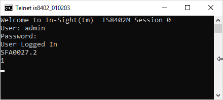 The In-Sight sensor responds with 1, indicating that the command was successfully executed. The EditFloat control has been successfully changed from 3.5 to 7.2: