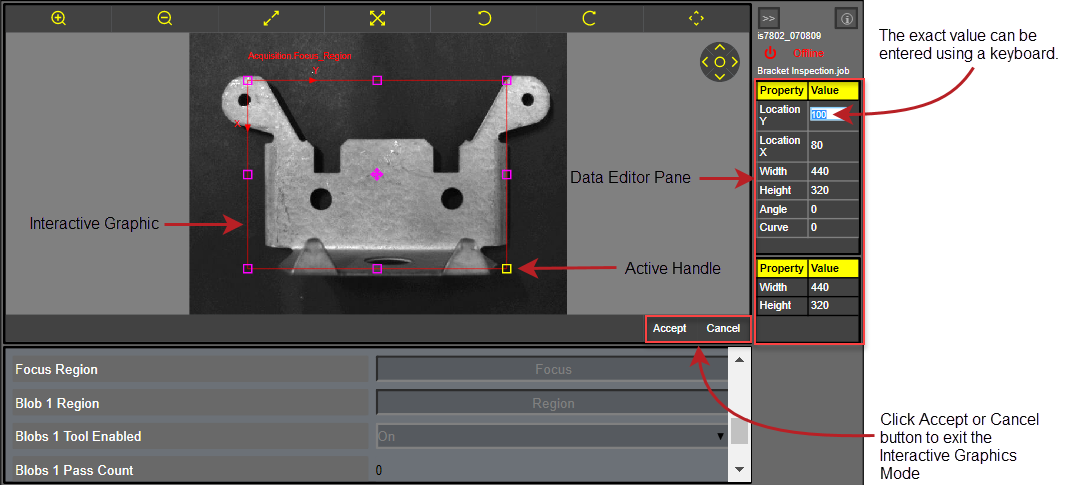 - To accept the changes and exit the Interactive Graphics Mode, click Accept. To cancel the changes and exit the Interactive Graphics Mode, click Cancel.