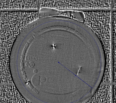 Finally, the SurfaceFlaw function uses the SurfaceFX output image as its input image, detecting areas of local intensity and size variations to identify flaws in the image (below).