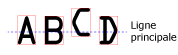 - Gauche -> gauche : indique que le pas est mesuré comme la distance entre le côté gauche du rectangle de caractère d'un caractère et le côté gauche du rectangle de caractère du caractère suivant.