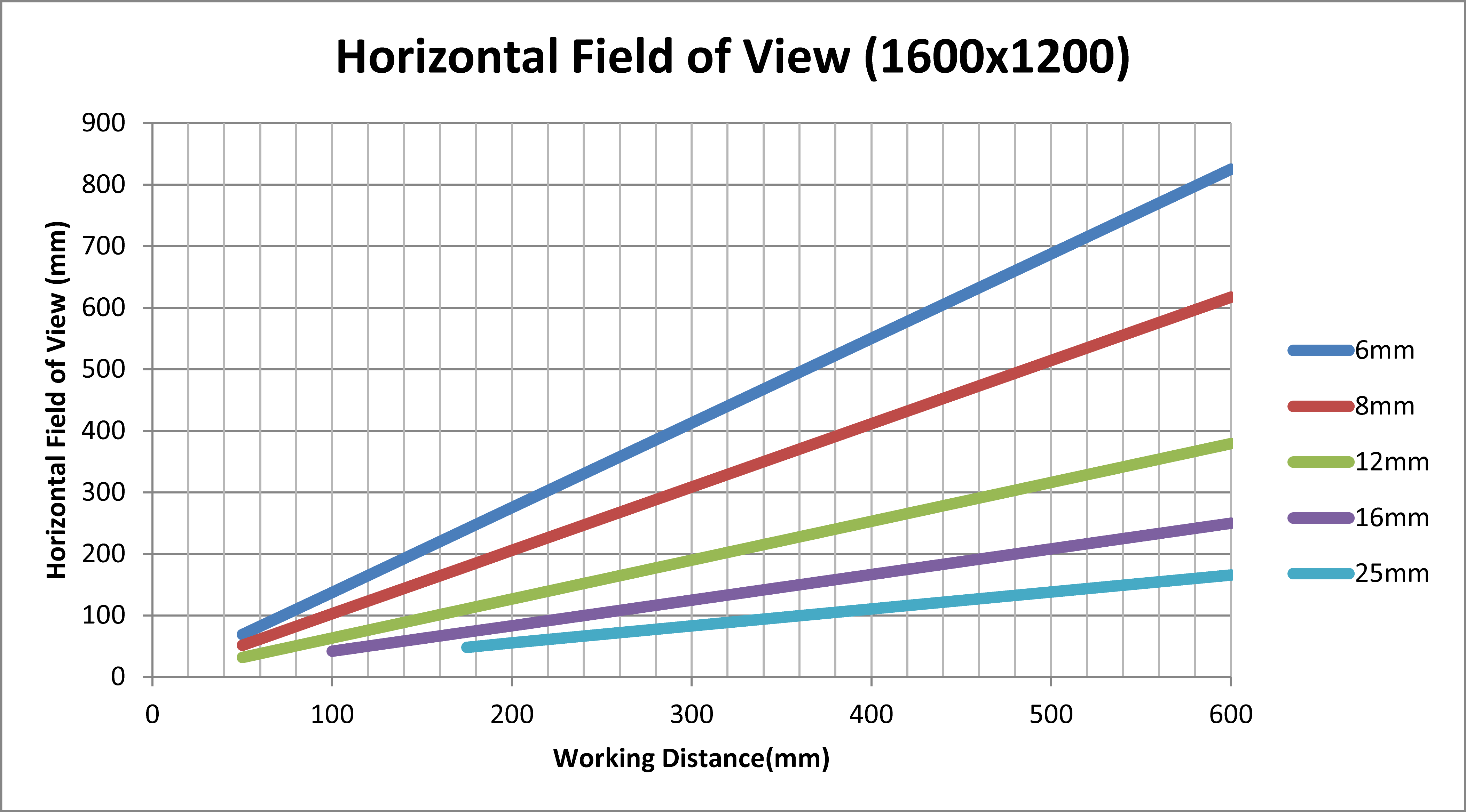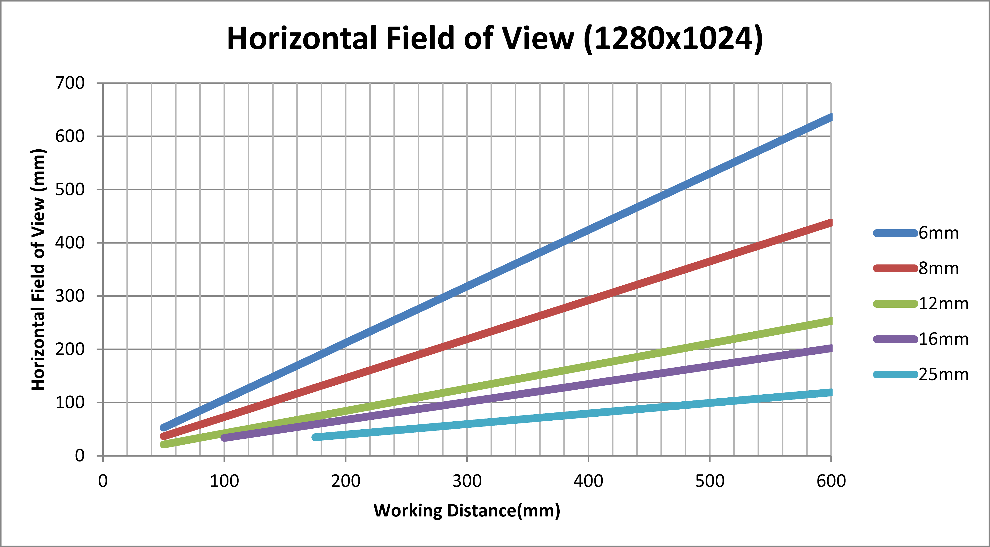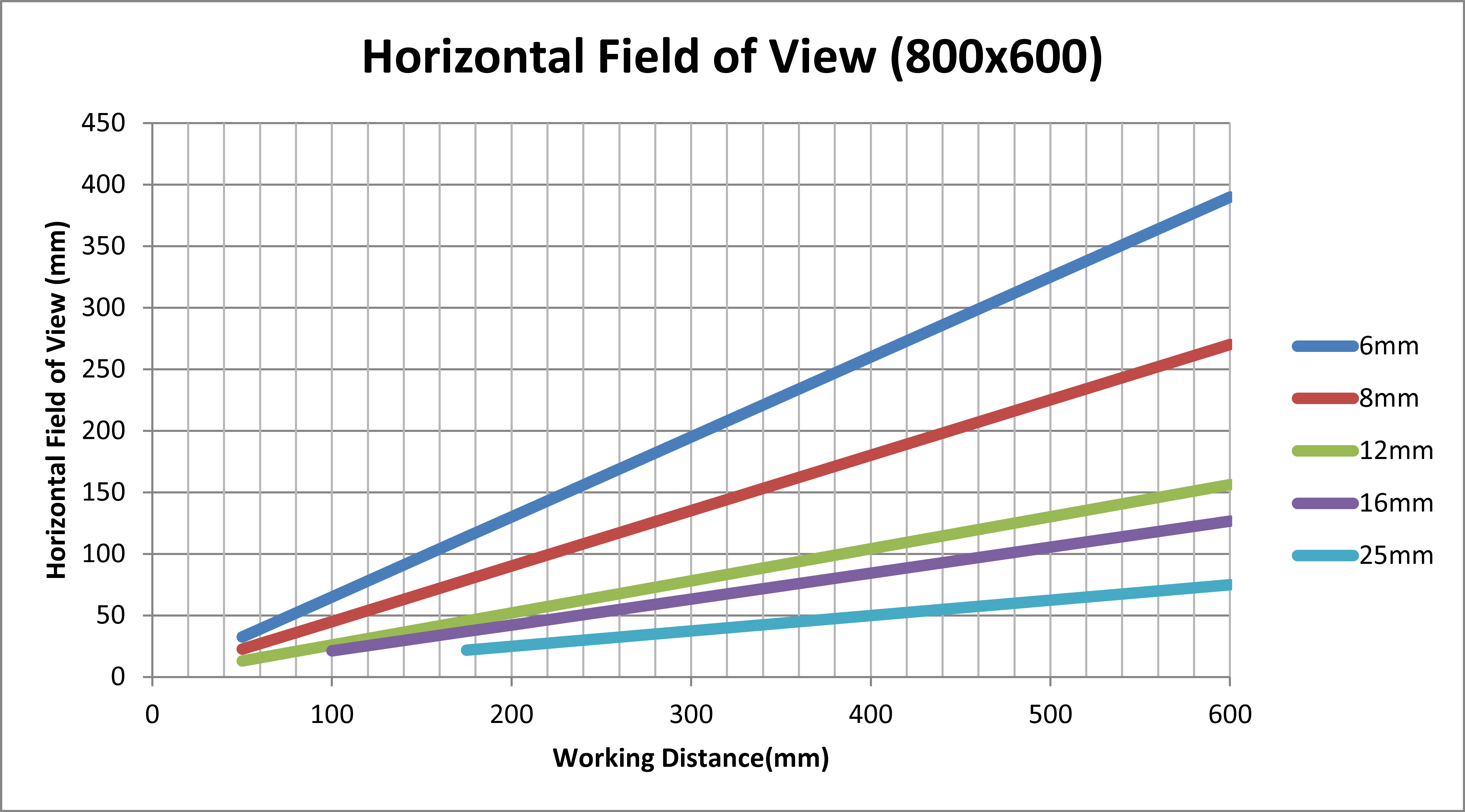 Working Distance and Field of View (S-Mount/M12 Lenses)