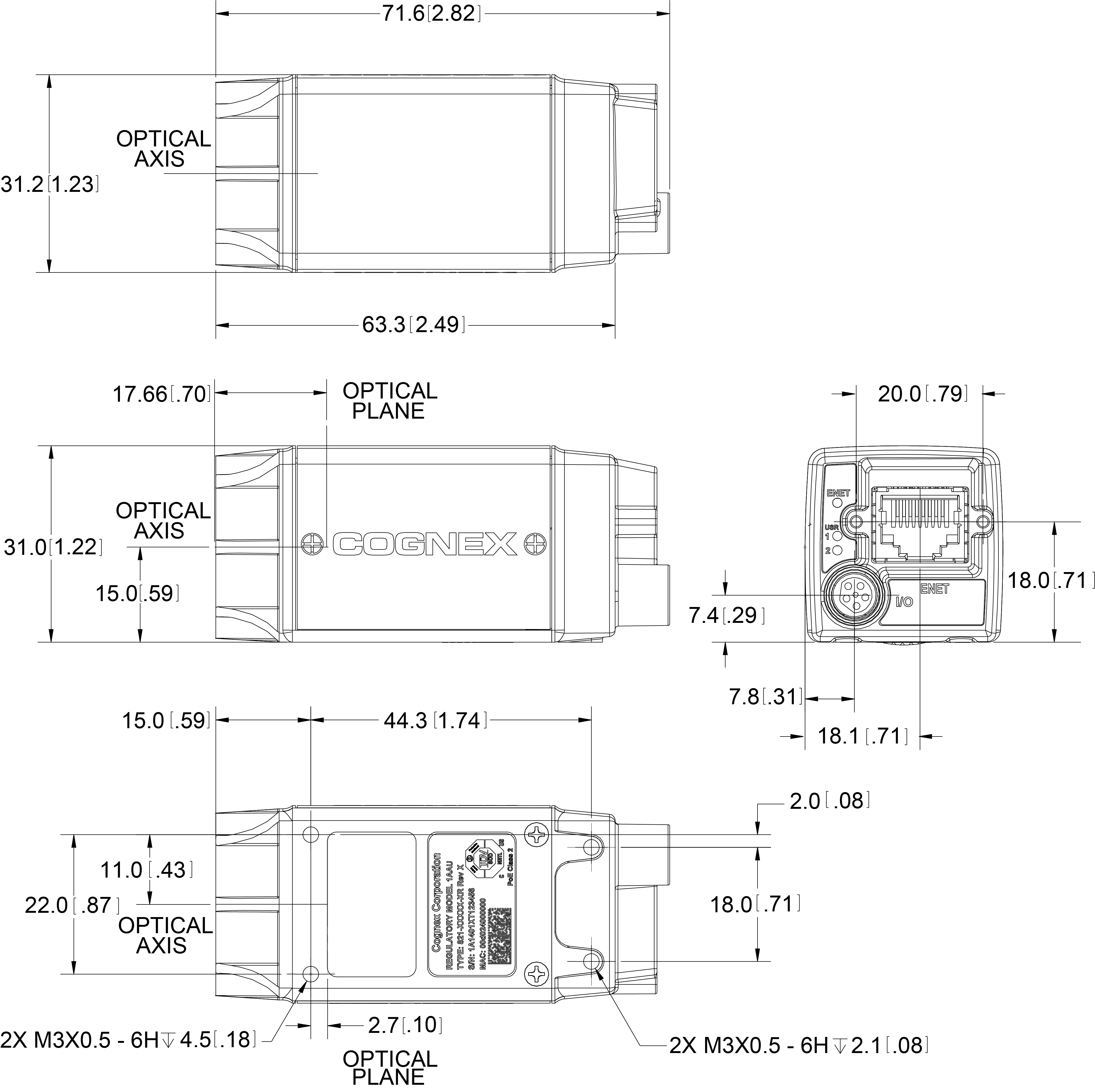 - Dimensions are in millimeters [inches] and are for reference purposes only.