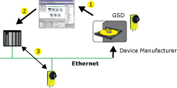 The PROFINET IO engineering process is similar to PROFIBUS: Decentralized field buses are assigned to one or more control systems during configuration; the IO-Device is configured to the actual system expansion, based on the content in the GSD file; and the IO-Device is simultaneously integrated, appropriately parameterized and configured into the PROFINET topology (1).