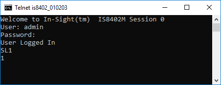 The In-Sight sensor responds with a status code of 1, indicating that the IP address was successfully locked.