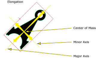 Returns a value that represents how a blob's pixels are stretched out from the blob's center of mass (centroid). For instance, a circle would report 0 Elongation, while a nail would have a high Elongation value. |
