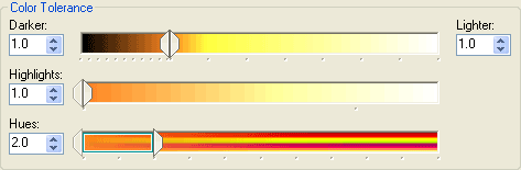 Tip: When configuring the Color Tolerance controls, position the TrainExtractColor property sheet so that you can easily view the image. As you adjust the controls, the image will update to reflect the changes, depending on the type of Image Marking selected.