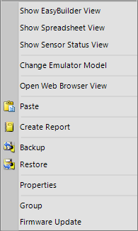 Right-clicking an In-Sight device from the In-Sight Network pane displays a menu that allows you to perform the following operations: