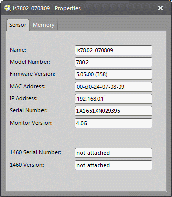 • MAC: The Media Access Control (MAC) address of the In-Sight device. The MAC address is a hardware address that identifies a specific node of a network. Every In-Sight vision system has a unique MAC address assigned to it, which cannot be changed. For example, 00-d0-24-01-02-03. To locate the MAC address of an In-Sight vision system, look at the serial number label affixed to the vision system. Alternately, you can open the About In-Sight Explorer dialog. For more information, see About In-Sight Explorer Dialog.